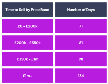 When we look at the Time to Sell across property price, it has also risen in every price bracket. Properties over £1m stand out, with an 8.6% increase (11 days) in Time to Sell year on year. On average, it now takes 134 days to sell a property in the £1m+ bracket. Perhaps this is unsurprising following the announcement of the mansion tax in November’s budget. Yet even those in the price bracket of £350k to £1m take an average of 98 days to Sales Agreed, which is over three months! It’s clear that our estate agent partners have their work cut out for them.